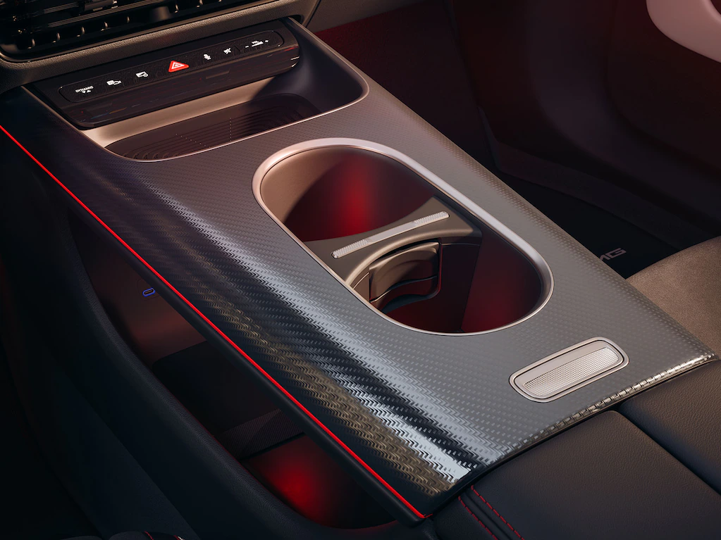 Inteligent, elegant, accesibil. Consola centrală cu design nou este poziționată la înălțime, pentru o senzație sportivă, și are două niveluri, inclusiv un punct de încărcare wireless pentru smartphone.[3] Ornamentele standard mate antracit pot fi opțional realizate din lemn, aluminiu sau finisaje din fibre naturale.