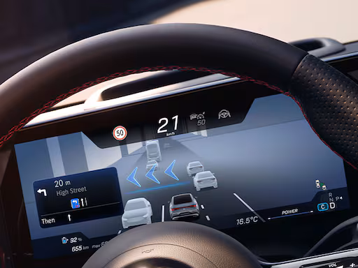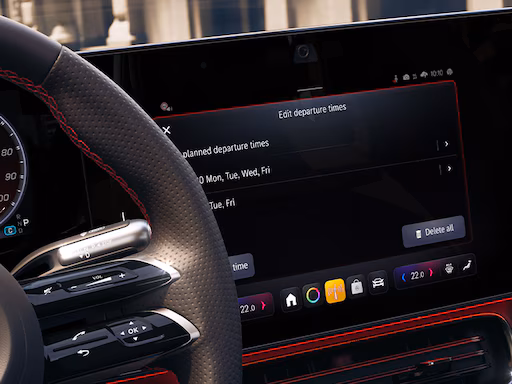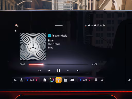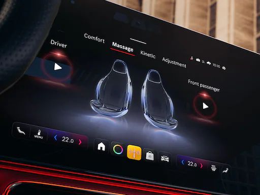 Cu sistemul de sunet surround Burmester®3D[3], te bucuri de o experiență audio premium, care sporesc și atractivitatea luxoasă a interiorului prin capacele de difuzoare placate cu crom. Bazat pe 16 difuzoare și un amplificator puternic, acest sistem include și funcții avansate precum „Dolby Atmos®” și „Personalised Sound”, care îți permit să-ți configurezi experiența conform propriilor preferințe.